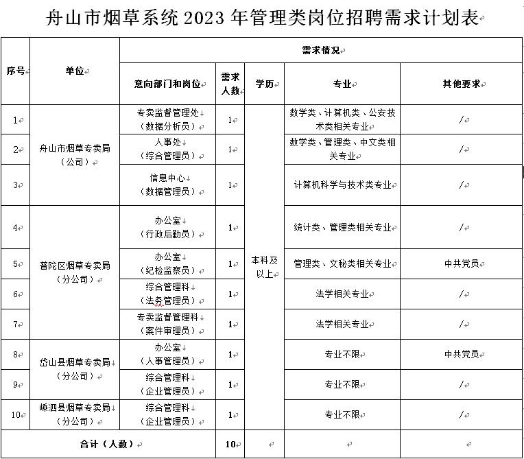 附件:舟山市煙草系統(tǒng)2023年管理類崗位招聘需求計劃表.docx
