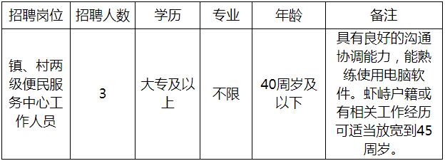 因工作需要,蝦峙鎮(zhèn)政府決定面向社會(huì)公開招聘編外工作人員3名?,F(xiàn)將有關(guān)事宜公告如下: