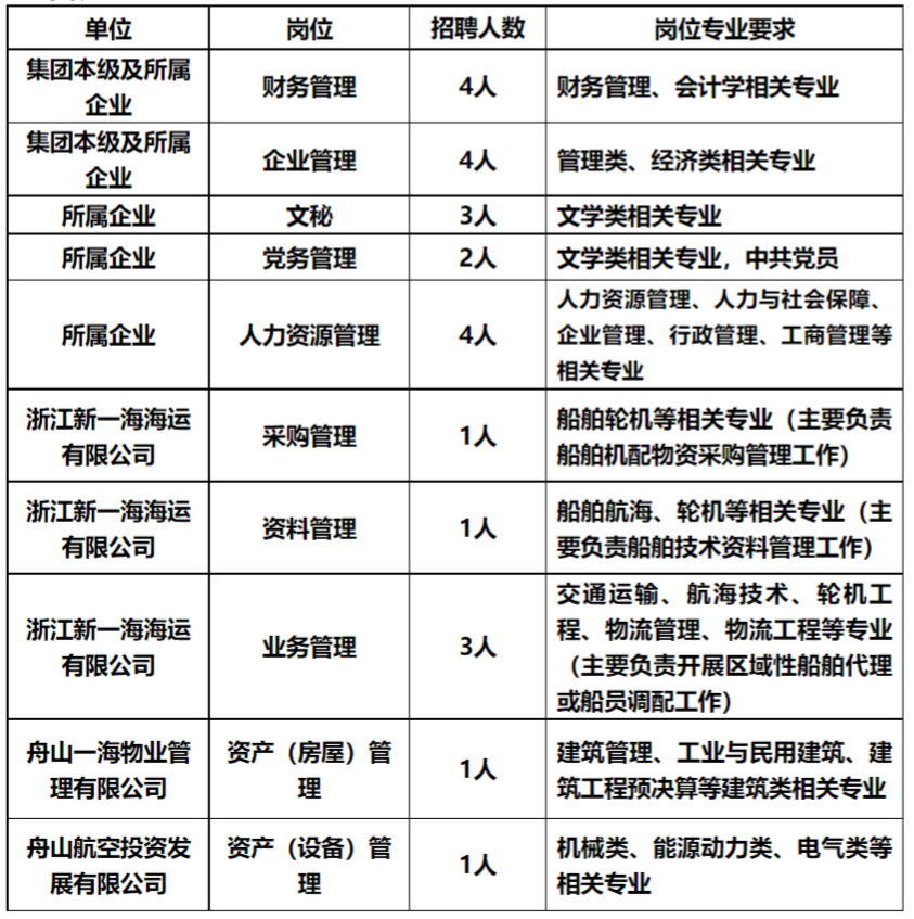聯(lián)系人:舟山交通投資集團(tuán)有限公司人力資源部李女士。