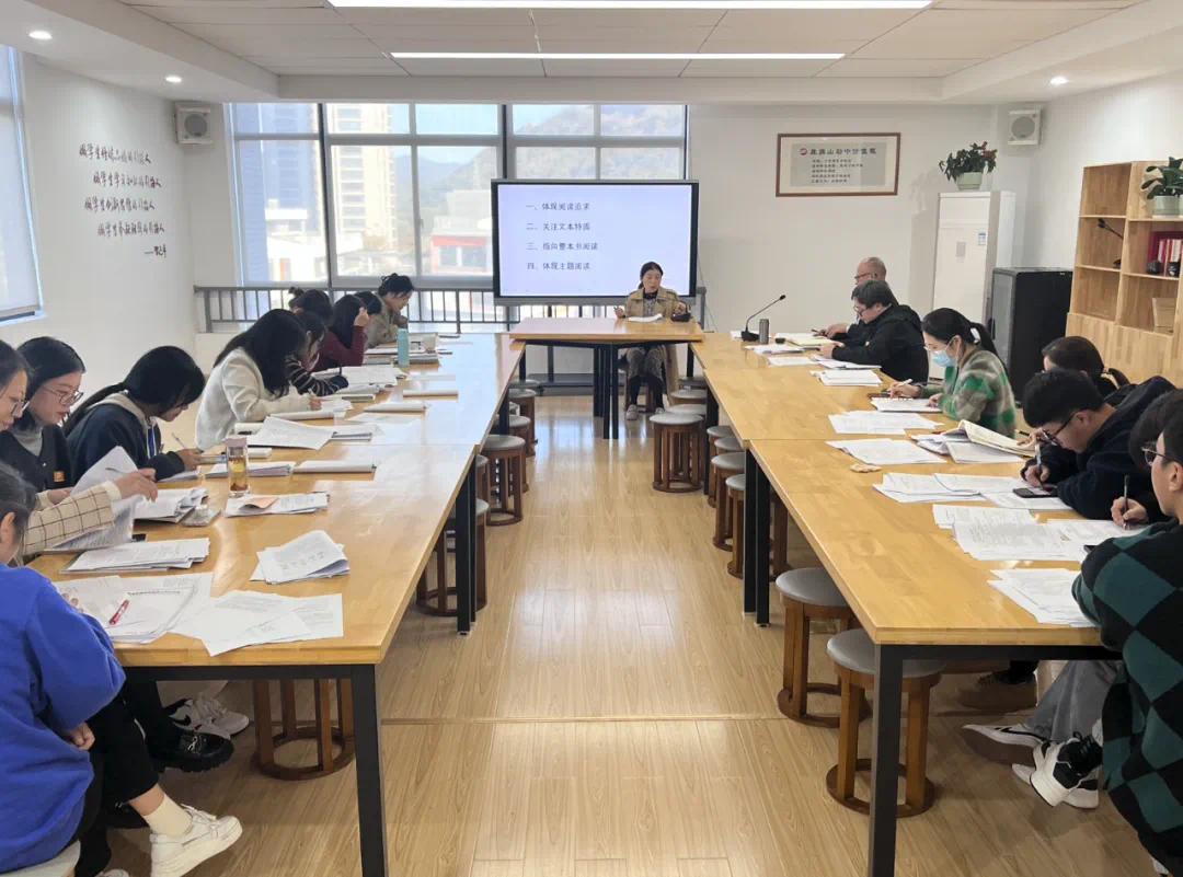 在旌旗山初中,組團研討是語文教研組的傳統(tǒng)。通常情況下,教研組每兩周舉辦一次小活動,每月舉辦一次大型活動。每次大型教研活動都會基本輻射整個南海教育集團,或現(xiàn)場參與,或線上直播。