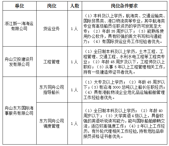 - 舟山交通投資集團(tuán)有限公司招聘公告