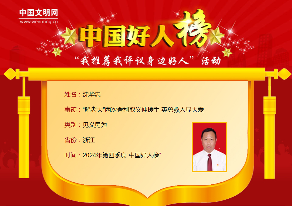 一次或許有偶然因素,但兩次面臨類似情況都做出同樣的選擇,足以證明沈華忠的英雄本色?!熬热耸菨O民的本能”,沈華忠質(zhì)樸的話語閃爍著人性的光輝,傳遞著人間大愛,令人深受觸動(dòng)。