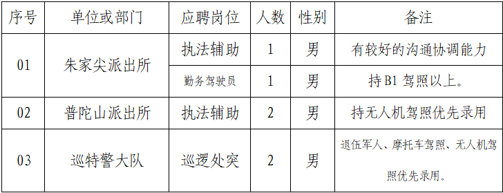因工作需要,舟山市公安局普陀山分局決定面向社會公開招聘執(zhí)法執(zhí)勤輔助人員,現(xiàn)將有關(guān)事項公告如下:
