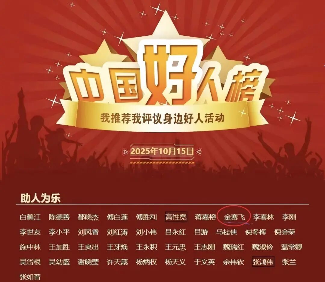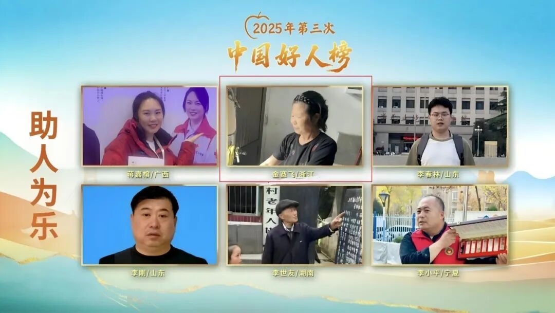 昨天,中央文明辦發(fā)布2025年第3次“中國(guó)好人榜”,我市金賽飛獲評(píng)助人為樂(lè)“中國(guó)好人”。記者從市文明辦了解到,截至目前,我市共有中國(guó)好人25例、浙江好人193例。
